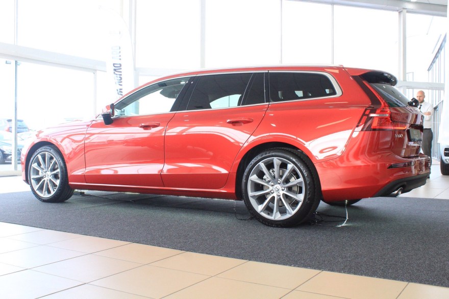 Next up is Trim Levels, in the new V60 there is 6 trim levels and they go thusly; Momentum which is base trim, Momentum Pro which adds a few options, Inscription which is the Luxury trim, a Pro variant of that too and also finally last but not least, the R-Design which is the sporty trim, if that’s not sporty enough however, there is as guessed a Pro variant of that too! really easy to get to know once you figure it all out, Pro variants also get certain goodies that the normal variants don’t get like Pilot Assist, upgraded 19″ alloy wheels, electric tailgate and much much more. on display at the Launch event I went to was a D4 190bhp V60 Momentum finished in Fusion Red with the optional 19″ Alloy wheels, rear tints, Electric tailgate and much much more, in fact on first glance it looked like an Inscription, it was only until I asked what trim it was that I then actually found out, inside it had black leather all over it and really went well with the red exterior, it truly was gorgeous!