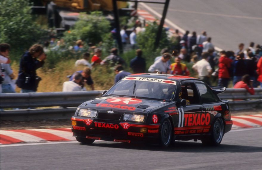 Starting in 1985, the Sierra started to make waves in touring car races under the guise of Andy Rouse. Andy was a very competitive driver in the BTCC Championship during the eighties and in 1985 he decided to pilot a Merkur XR4Ti in the hopes that something good could come out of it and boy was he onto something. The Merkur variant of the Sierra wasn’t actually sold in Europe under that badge so the ’85 race car was an import that was brought over from America to go racing.
